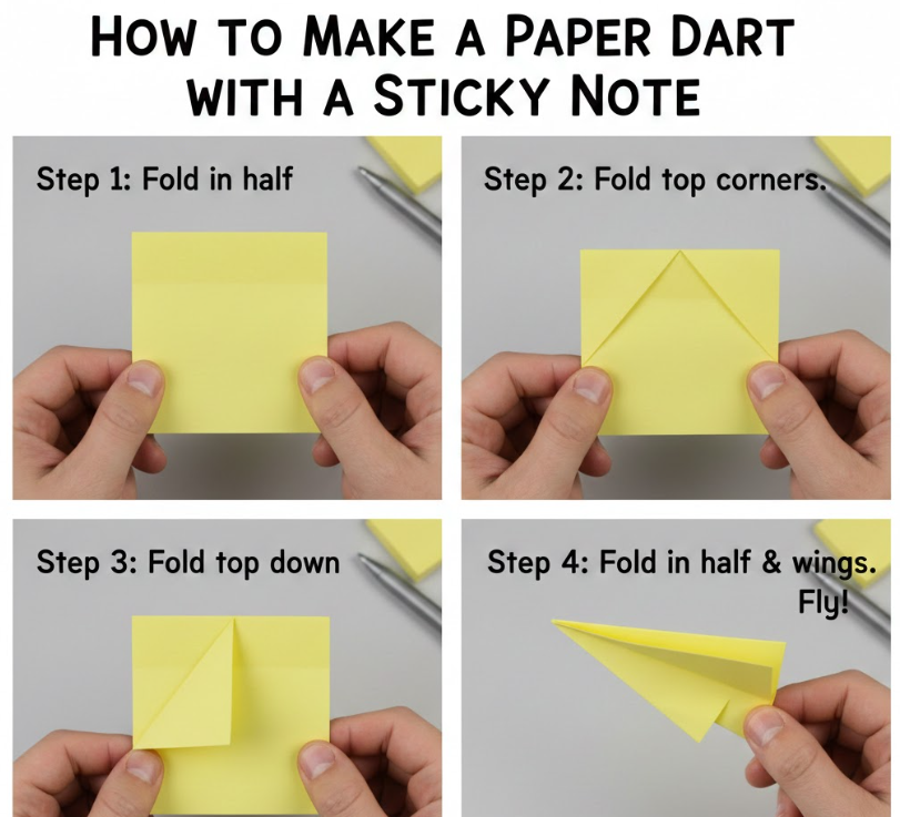 Learning how to make a paper dart with a sticky note is perfect when standard paper isn’t available.
