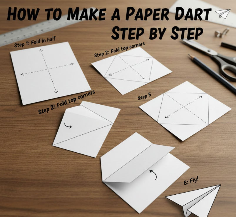 Learning how to make a paper dart step by step is the foundation for all other variations. This method focuses on balance, sharp folds, and controlled airflow.