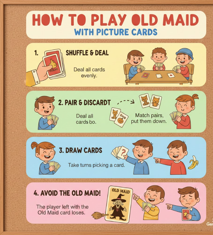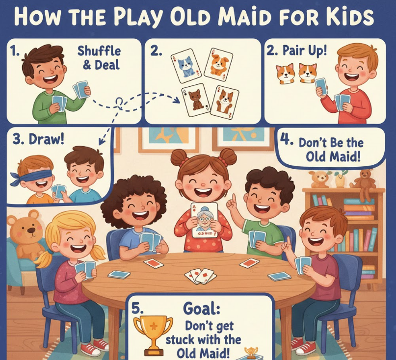 Old Maid is an excellent game for children because it combines simple rules with social interaction and strategic thinking. Adjusting the rules slightly ensures safety, engagement, and educational value.